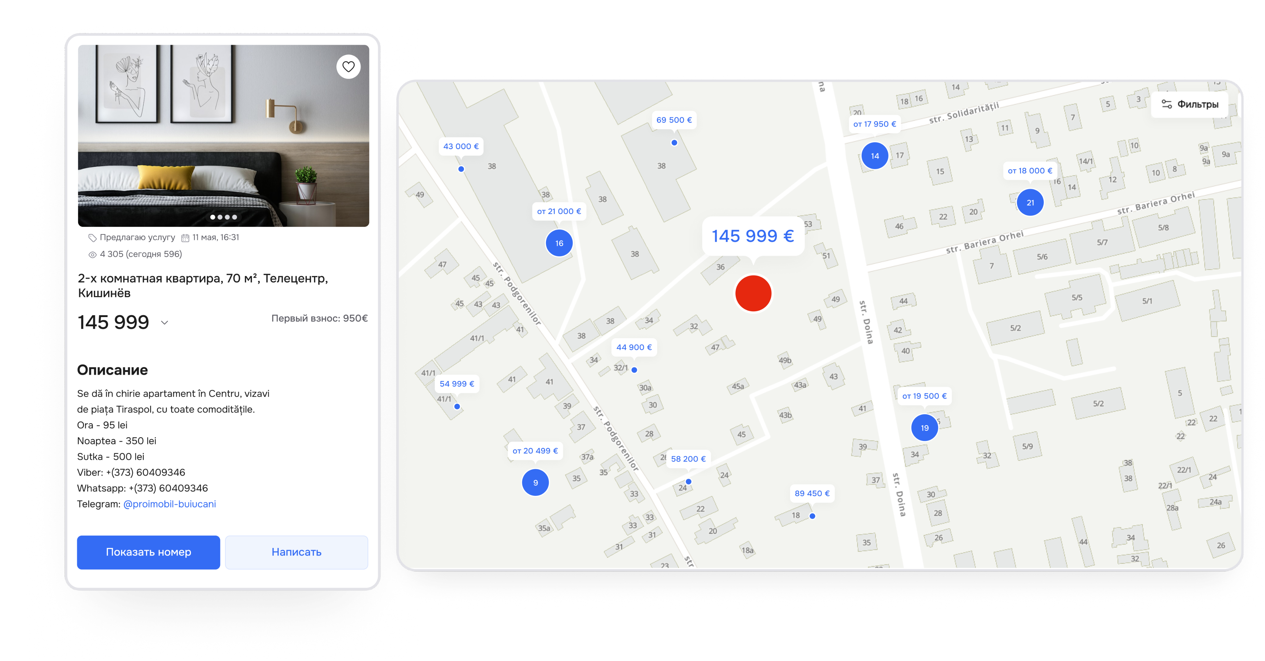 Просматривай объявление прямо на карте, без дополнительных страниц и переходов