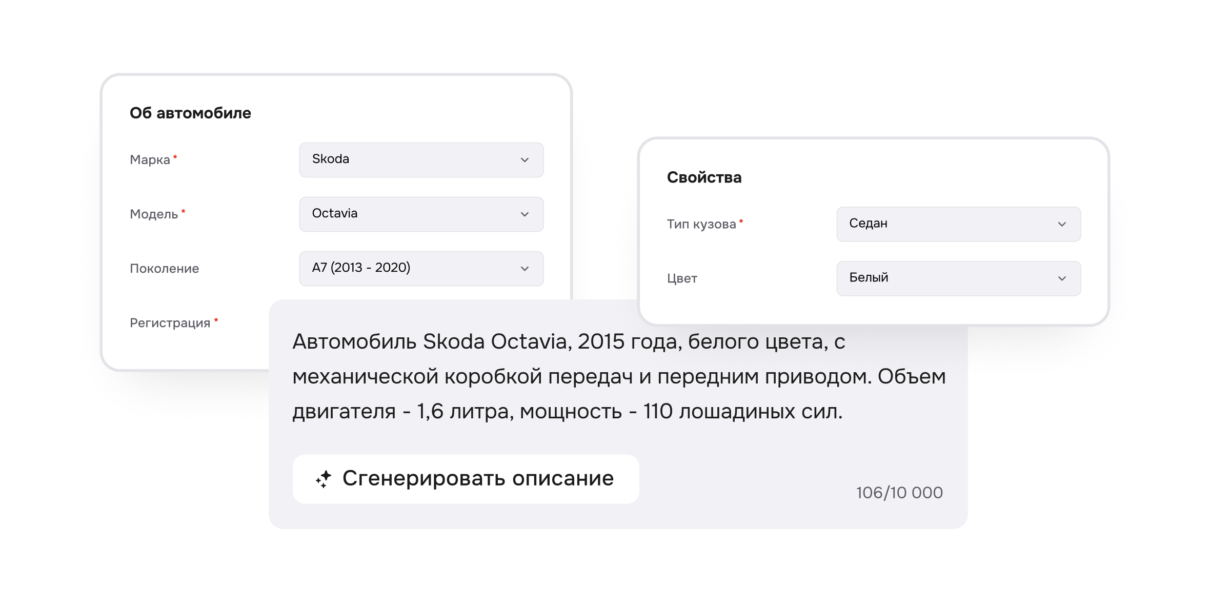 Загрузи фотографии авто, а ИИ заполнит марку, модель, характеристики и сгенерирует и описание на двух языках.